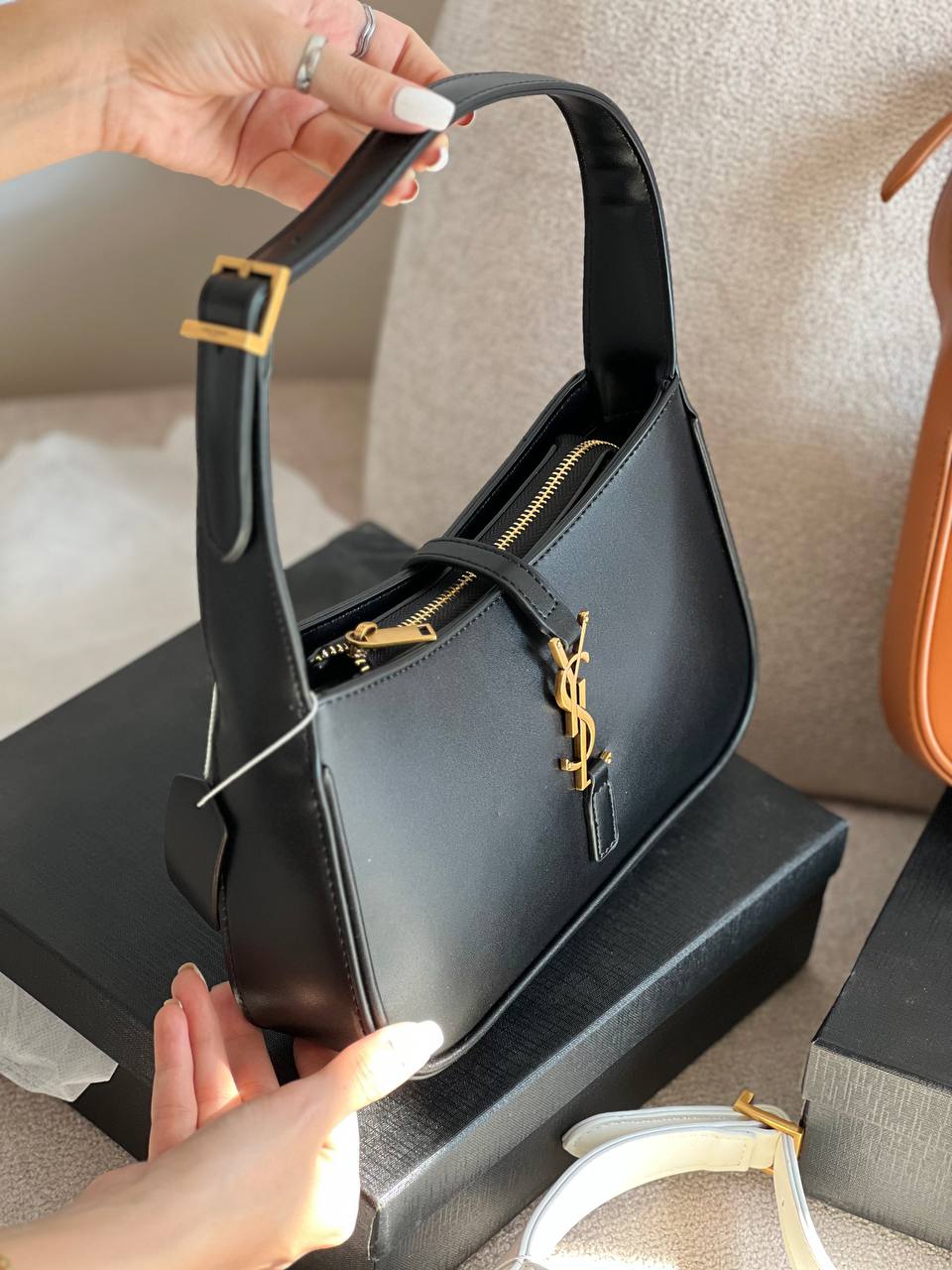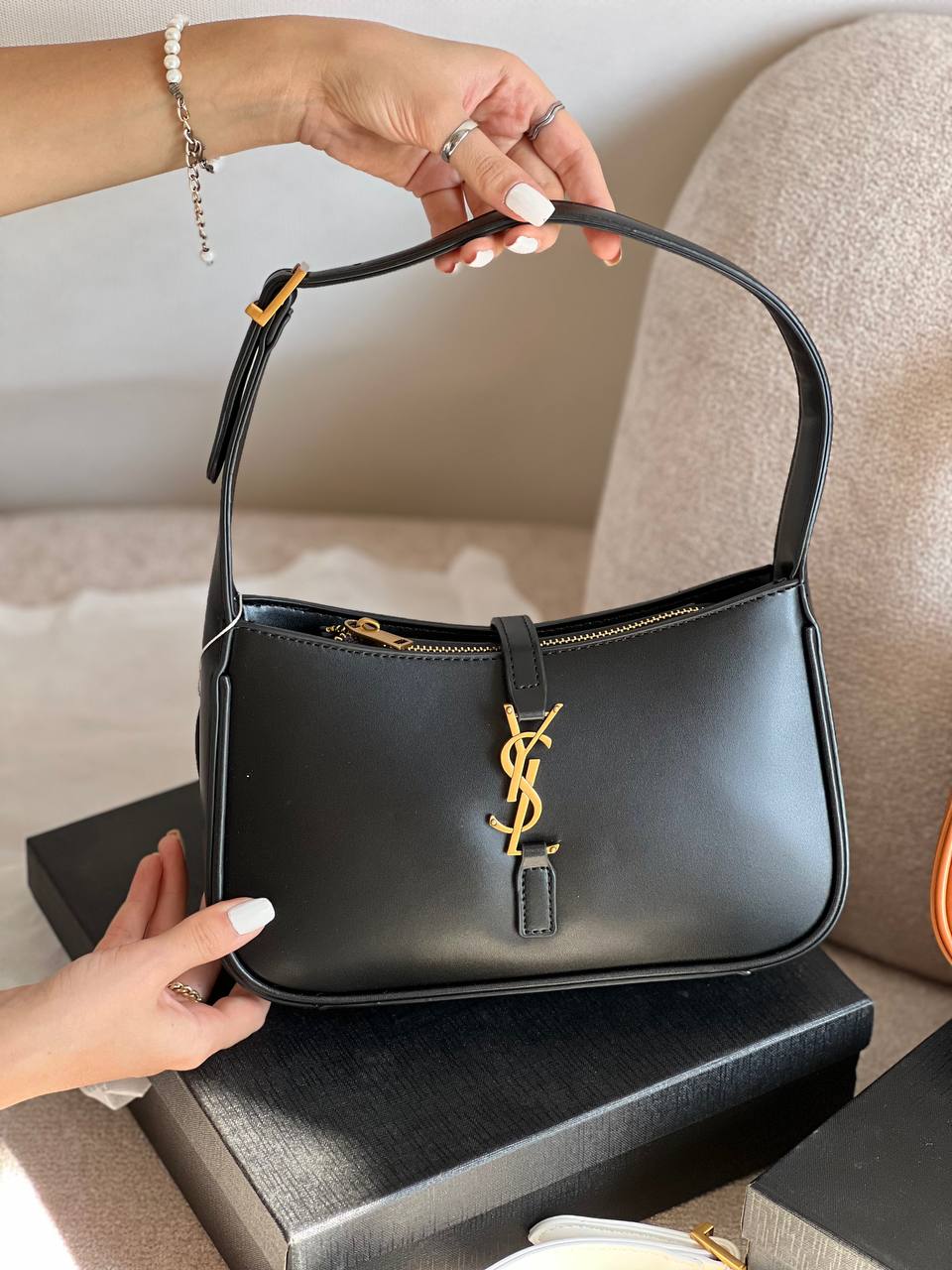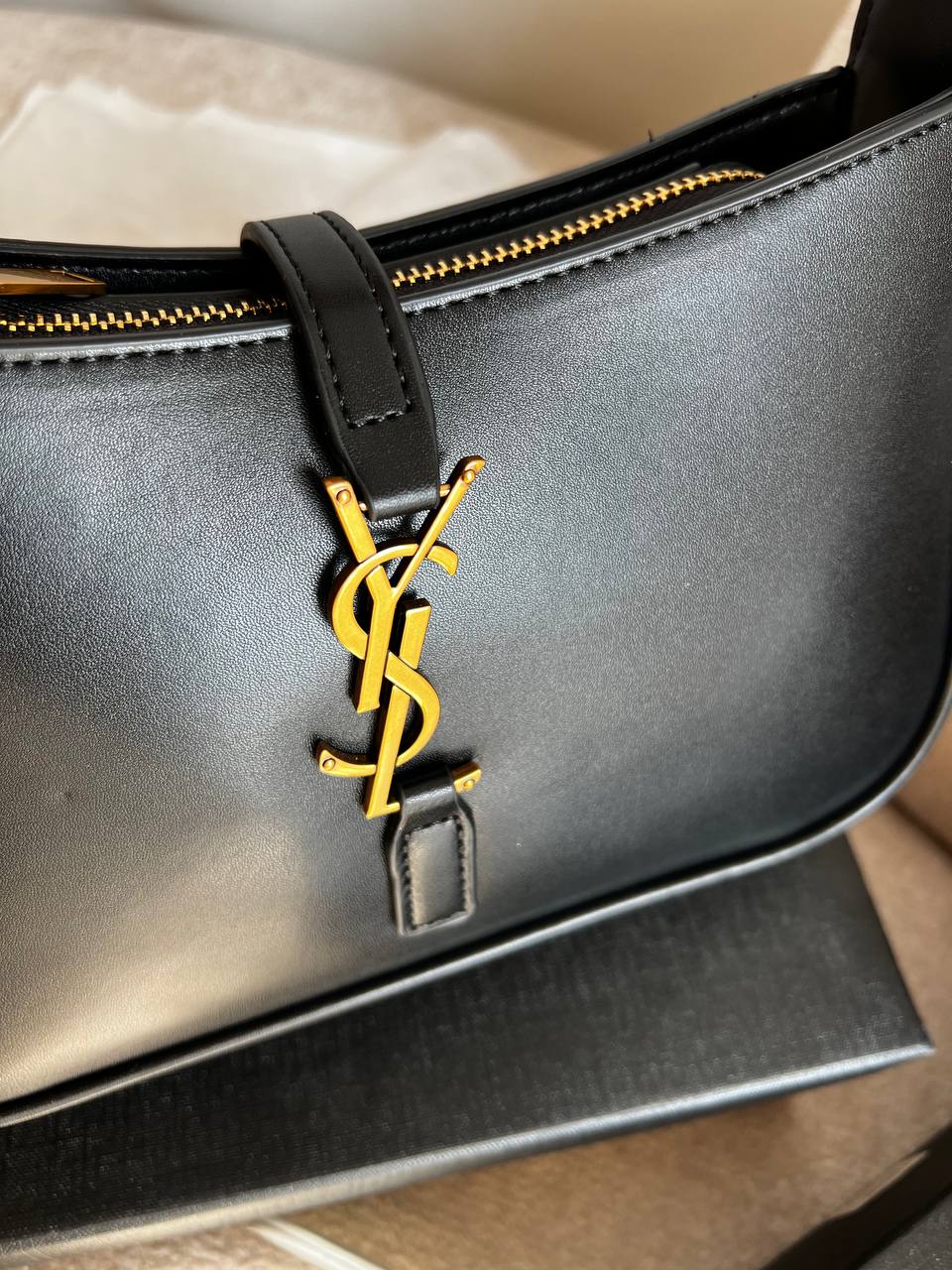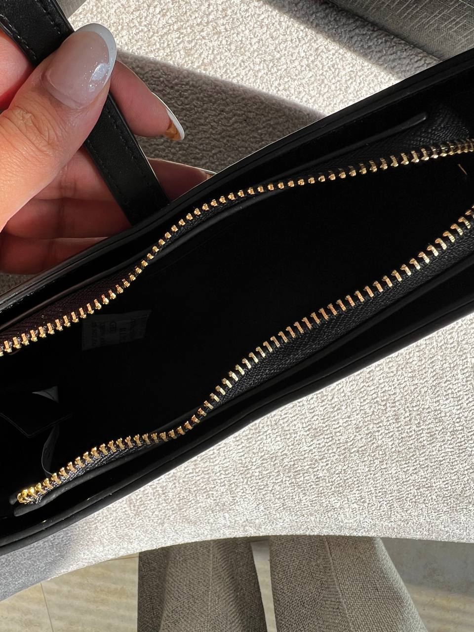 برند YSL روی یراق کیف بهصورت حک شده و همچنین استر داخلی کیف نیز با برند مشخص شده است که اصالت و ظرافت آن را دوچندان میکند. بند کوتاه کیف قابلیت تنظیم داشته و بهراحتی روی شانه قرار میگیرد.