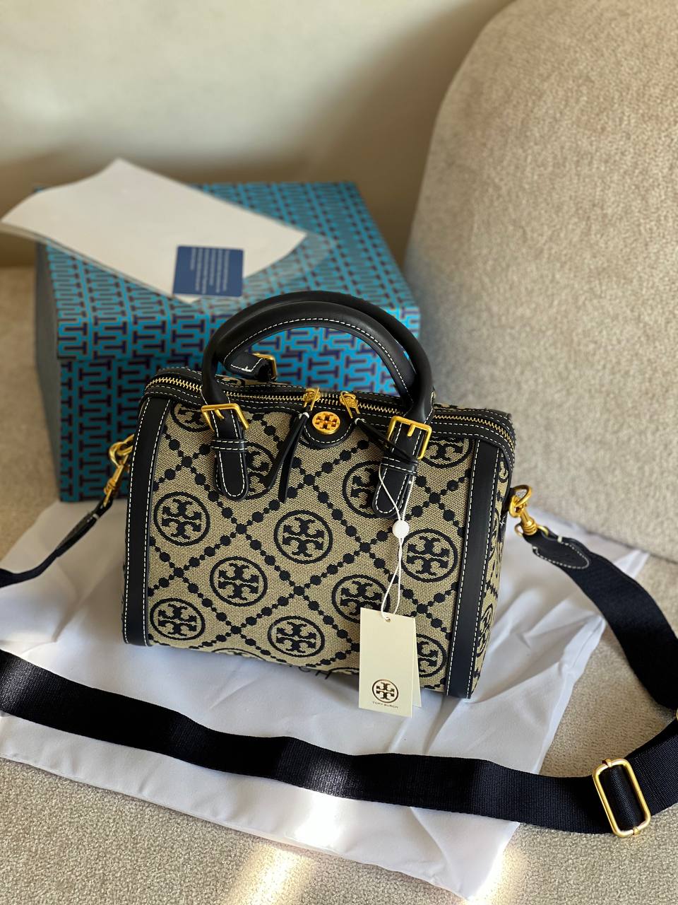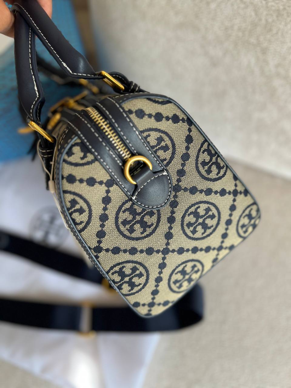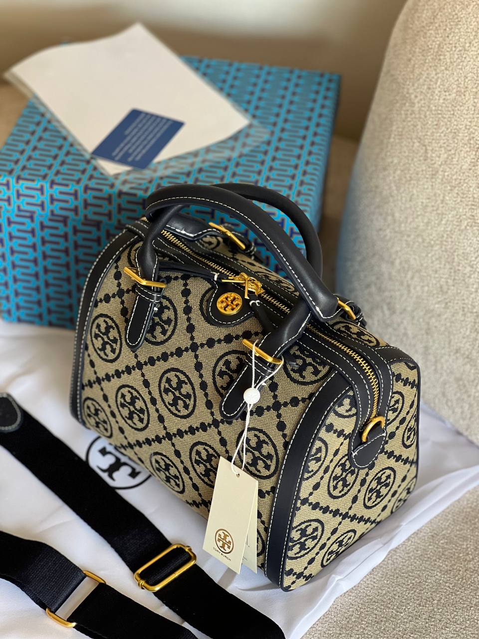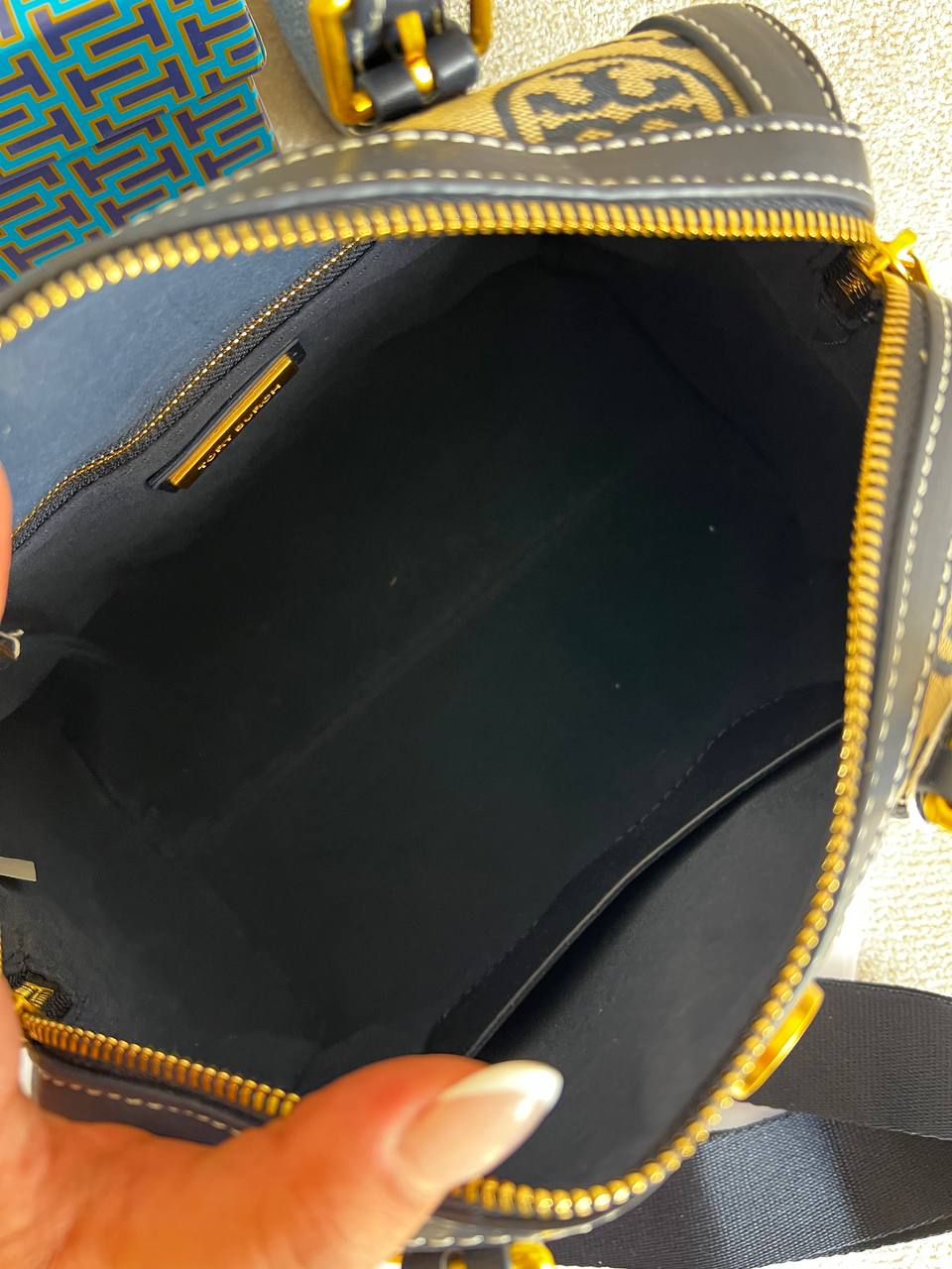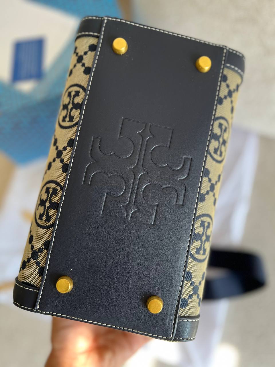 جزئیات برند Tory Burch بهصورت حکشده بر روی یراق کیف، سر زیپ و کف کیف وجود دارد که اصالت و جذابیت آن را دوچندان میکند.