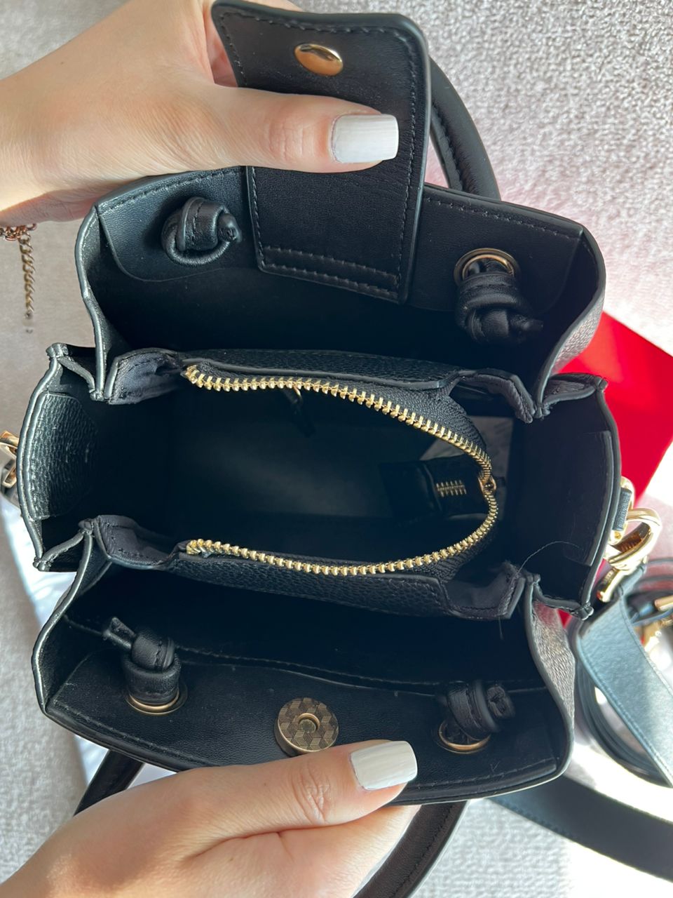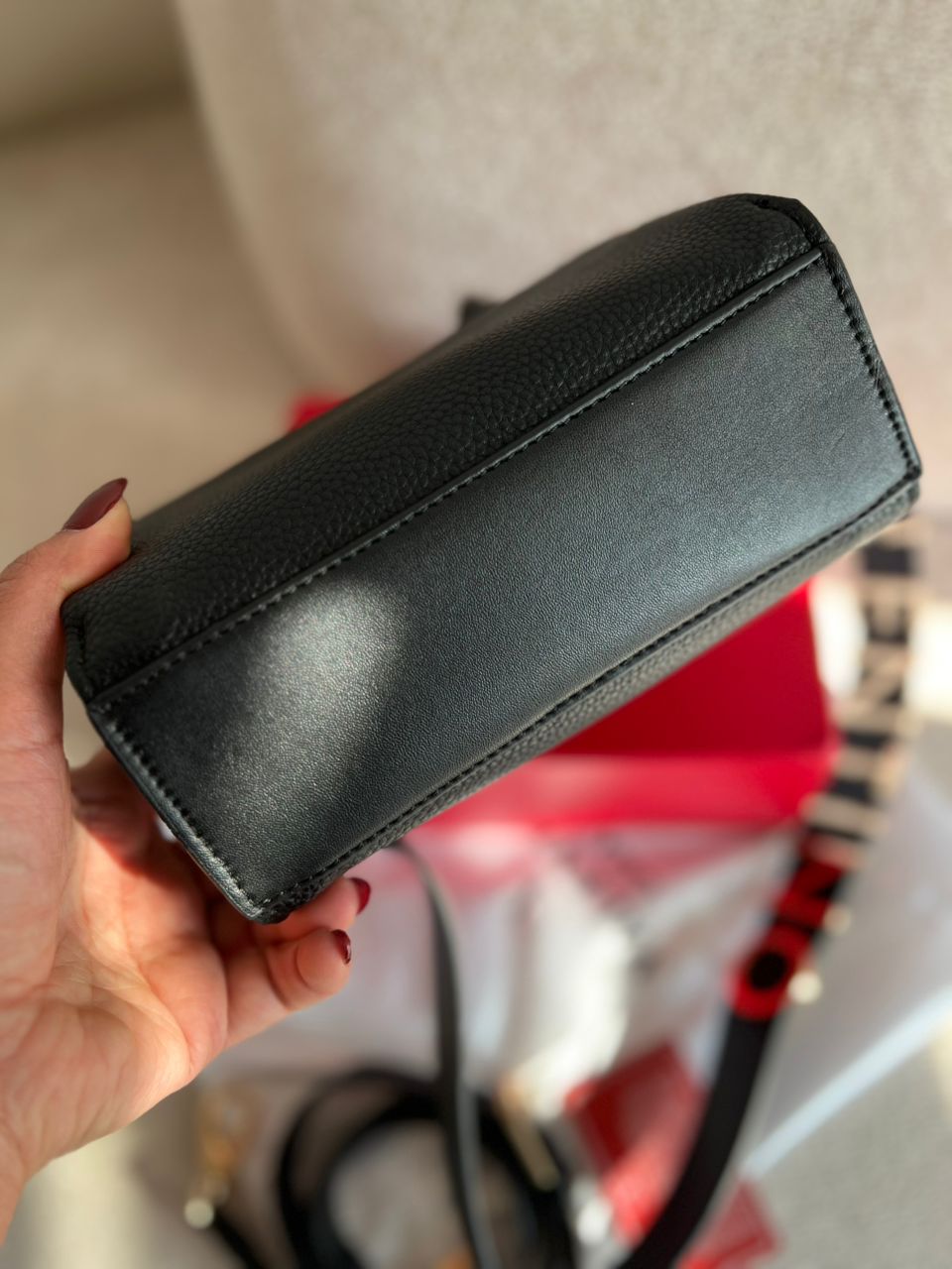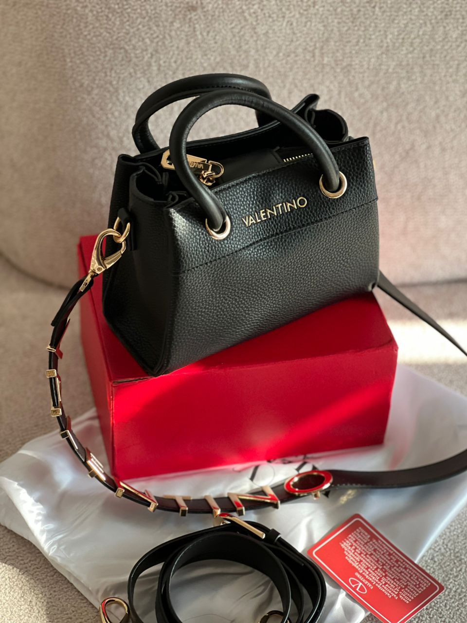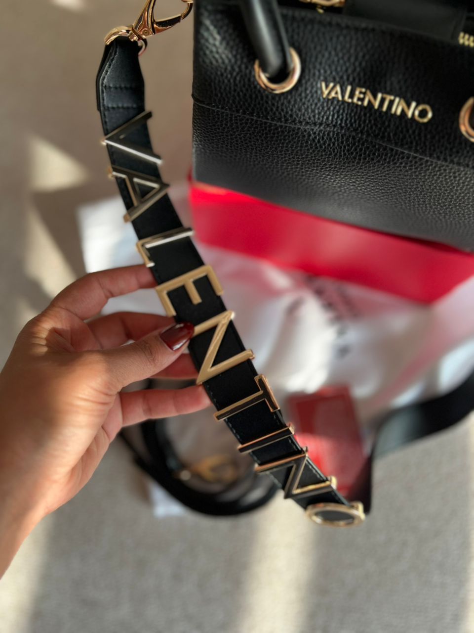 کیف مینی از برند ولنتینو . دارای دو بند بلند هست یکی از بند ها روش سگک ولنتینو دارد . یکی دیگش بند چرمی ساده بلند هست. یکی از سوالات متداول گوشی داخلش جا میشود .