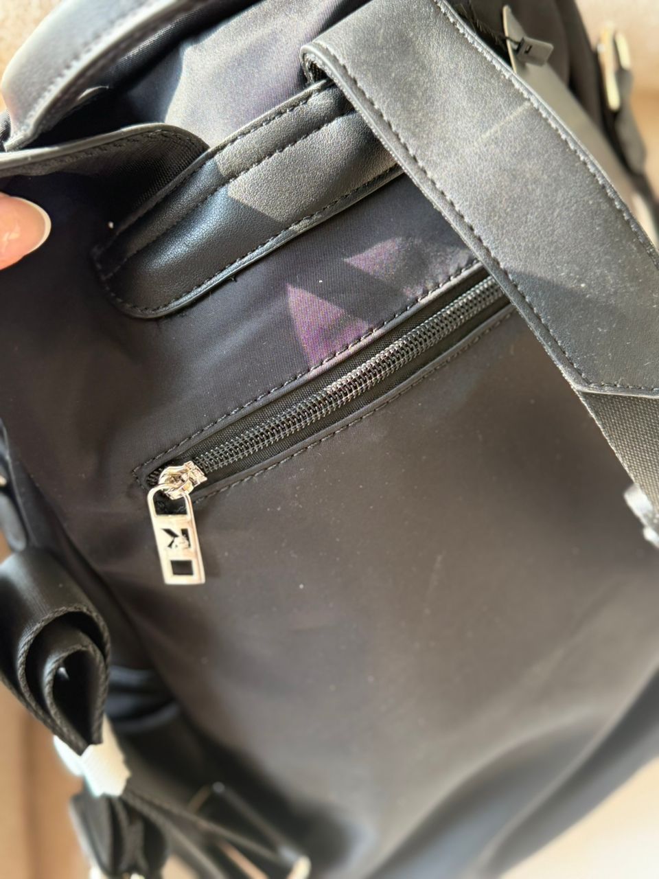 بسیار جادار و پشت کیف جیب دارد و کنارش جا برای گذاشتن بطری اب دارد .